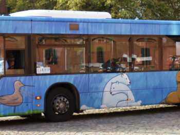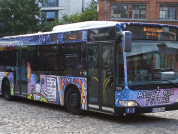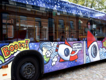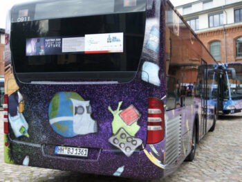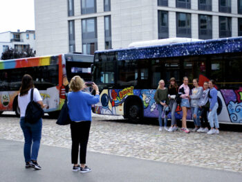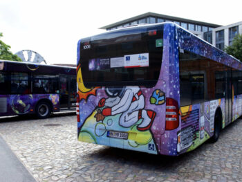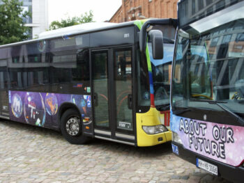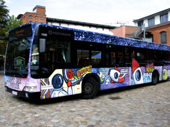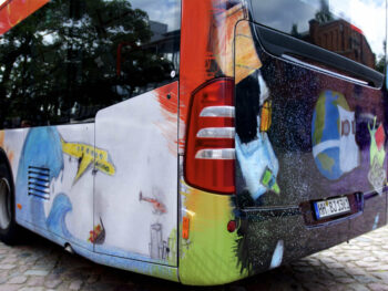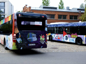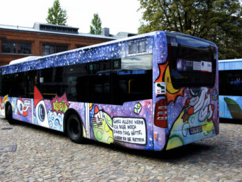 Wegen der Corona Pandemie wurden die vier PaintBus - Entwürfe in diesem Jahr auf Folie gedruckt und die Busse beklebt.