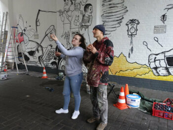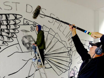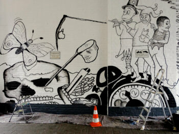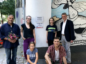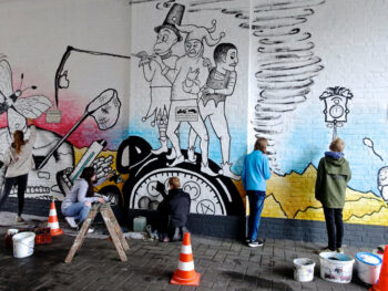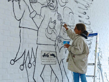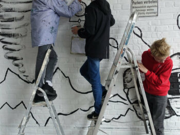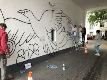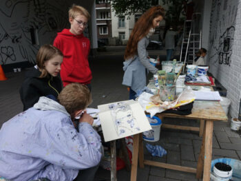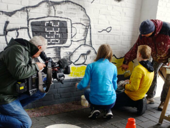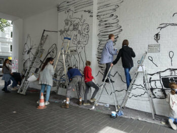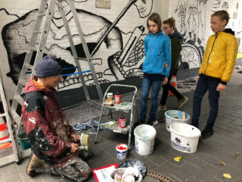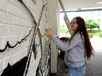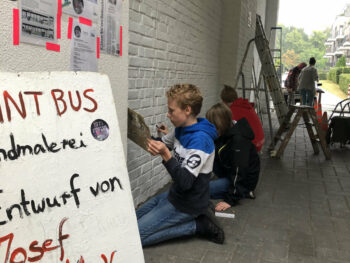 Der 13 jährige Josef Kluth vom Albert Schweitzer Gymnasium bekam die Möglichkeit, seinen Entwurf auf eine Hauswand zu malen.